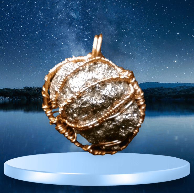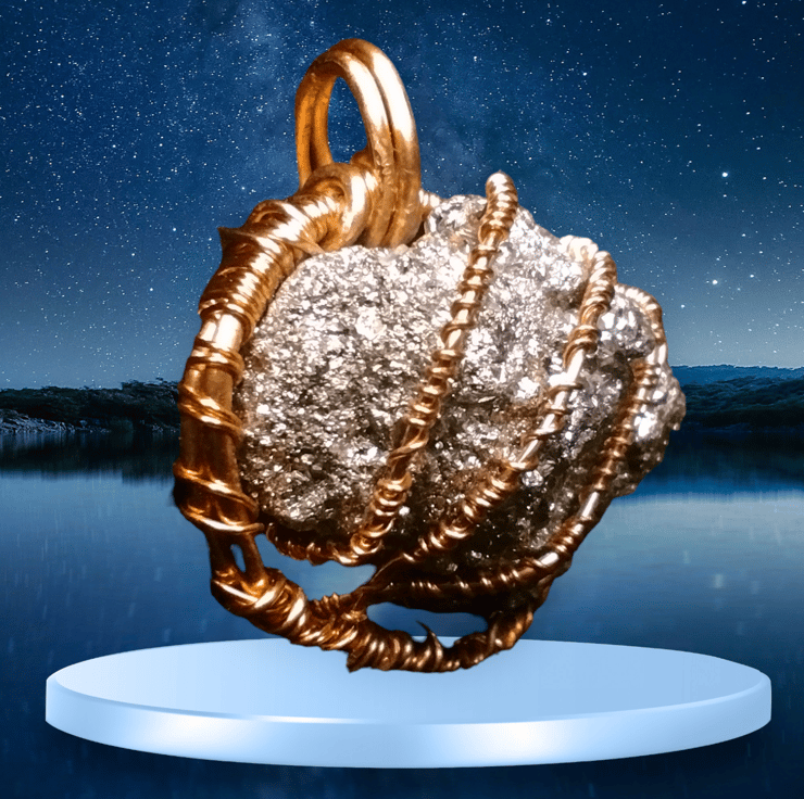 Pure Copper Wire Wrapped Pyrite Crystal Pendant