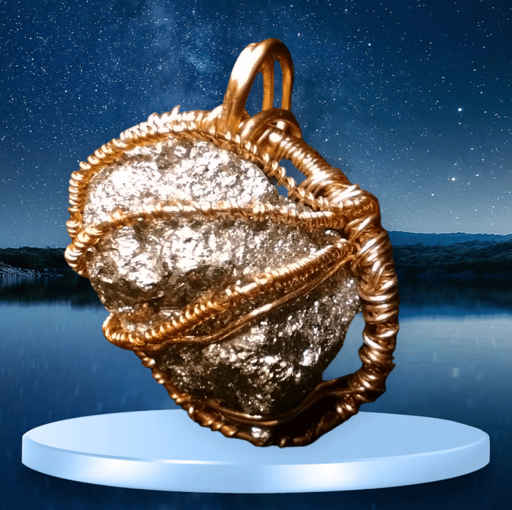 Beautiful Shiny Metallic Pyrite otherwise known as Fool's Gold or Marcasite has been lovingly wrapped with Pure Copper wire.