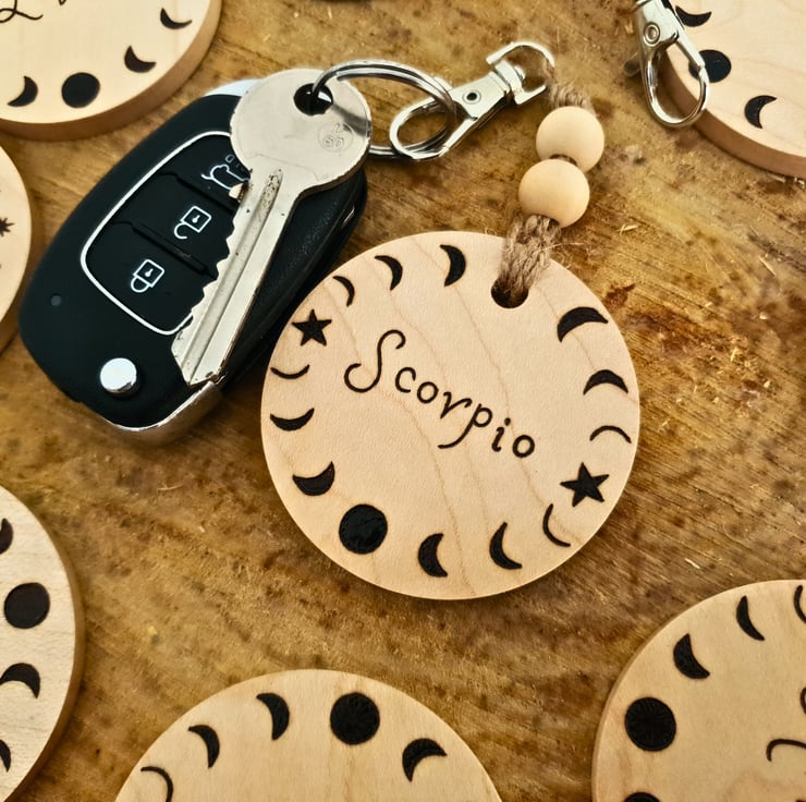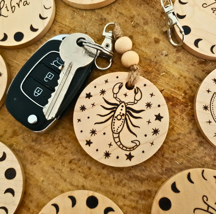 A unique present for the astrology lovers, this Scorpio wooden keyring can be gifted all year round, or as a birthday present to someone born between October 23rd - November 21st!