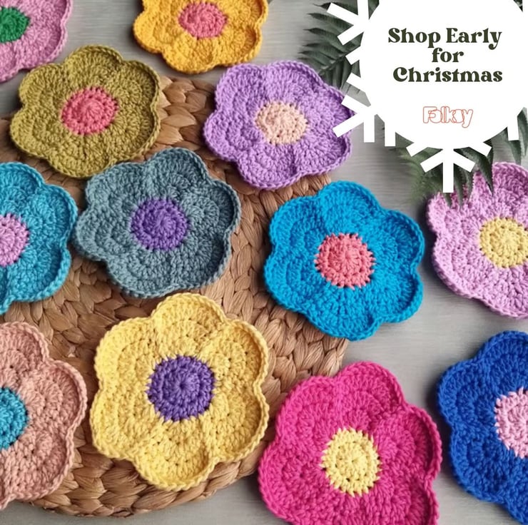 My popular daisy coasters are among my favourite things to make so when thinking about a way I could use up ‘leftovers’ of cotton yarn I just had to make these funky flower coasters. Made to the same pattern as my popular daisy coasters, these funky flower coasters are made with the same eco friendly cotton yarn and are perfect for your tea and coffee and are large enough to use with bowls and side plates too.