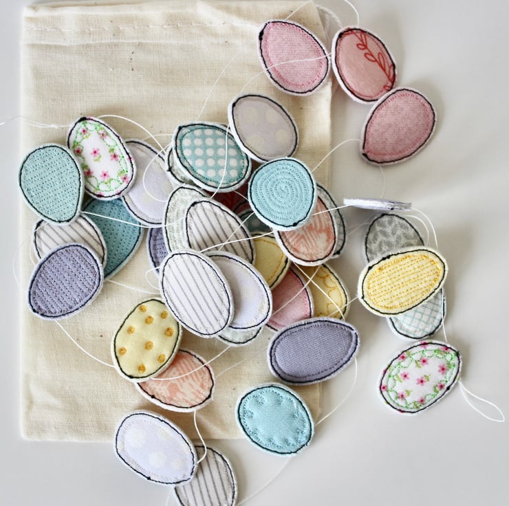 Your garland will be sent in a calico drawstring bag with a little egg on the strings and wrapped in tissue.