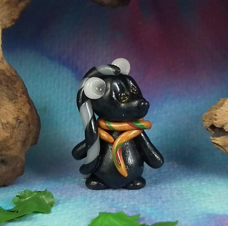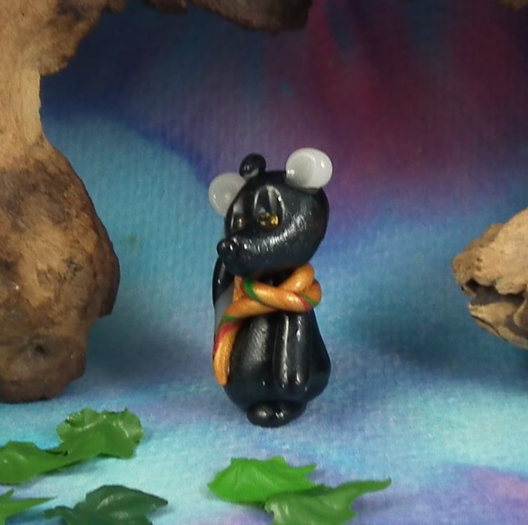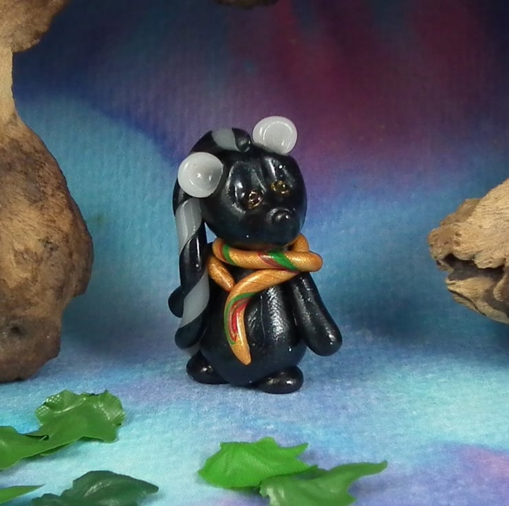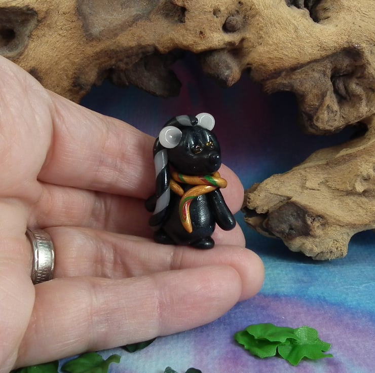 This is a 'one of a kind' creation; entirely handmade without the use of moulds here at my studio on the Sussex Coast. Modelled with artist blend polymers before sealing with lacquer, Tiny Lemur has sparkling glass eyes and is one and a half inches tall.