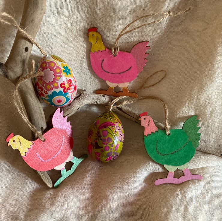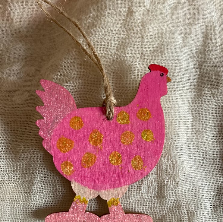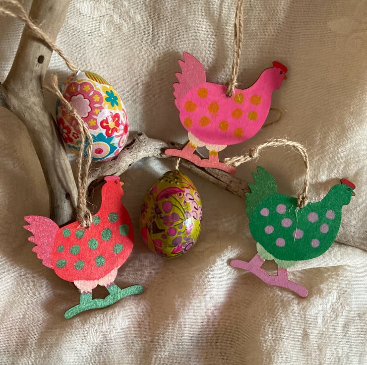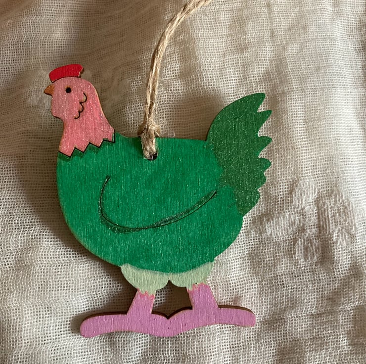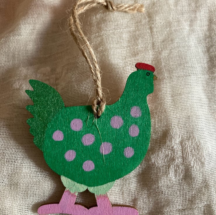 These 3 chicks have been hand painted in mainly green, pink and red
