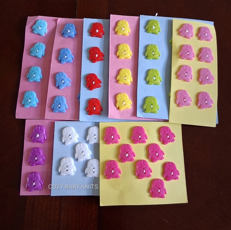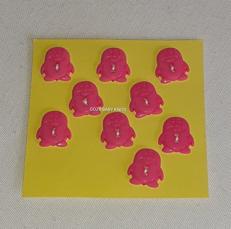 9 Cerise penguin shaped buttons