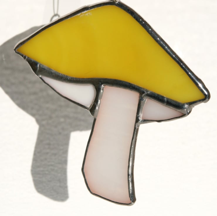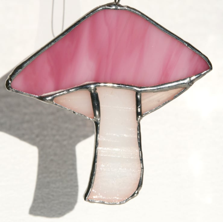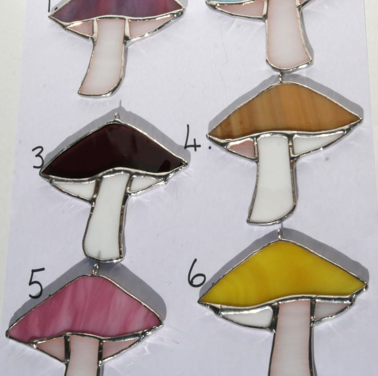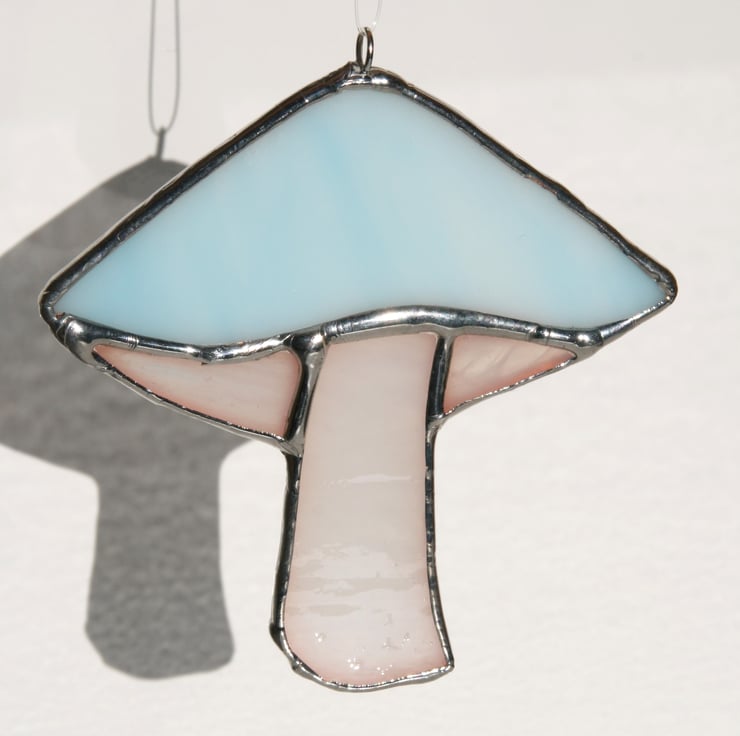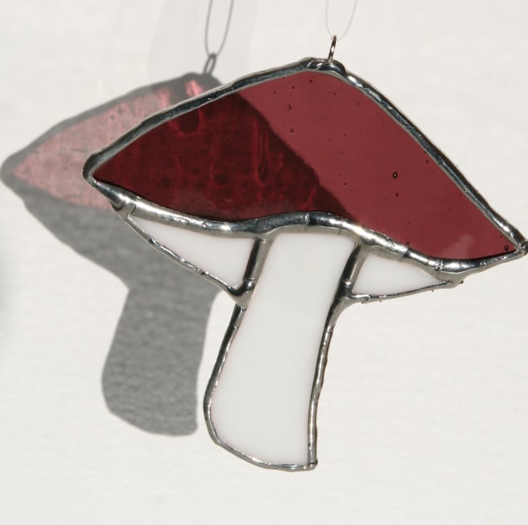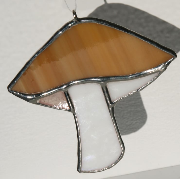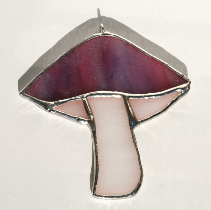 A simple but beautiful mushroom. These mushrooms are back by popular demand in some new colours using some interesting glass. Makes a lovely gift or treat for yourself. Would look good either hung at a window or against a wall. Looks good by itself or even better as a collection (a bit like a bunch of flowers).