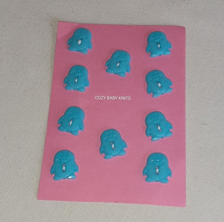 10 Blue penguin shaped buttons