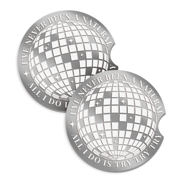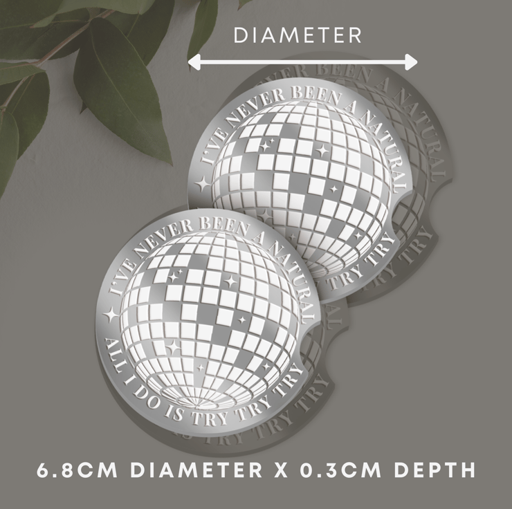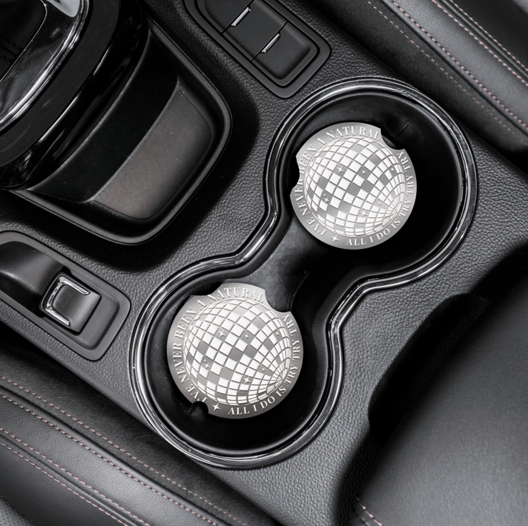 Never Been A Natural Car Coaster Set: Acrylic Mirrorball Car Decor Gift