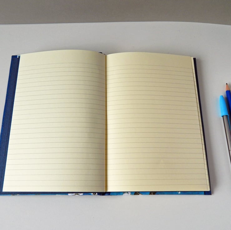This beautiful hardcover journal has leather spine and edge trim, with Almond Blossom paper sides. It contains ivory lined paper. An ideal and luxurious gift for a favourite person, who loves writing, note-taking, collecting quotes or poems, recipes etc.