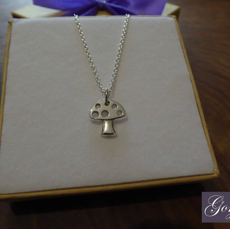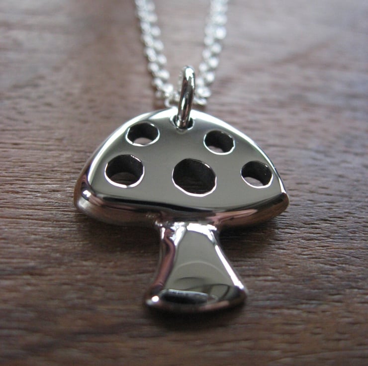 A little handmade mushroom pendant, made using argentium silver, it is approximately 2mm thick and only about 1.5cm in height.