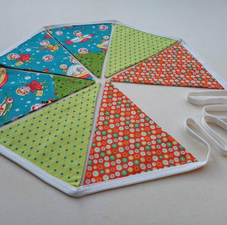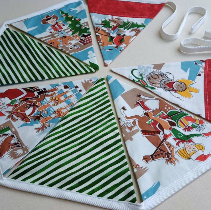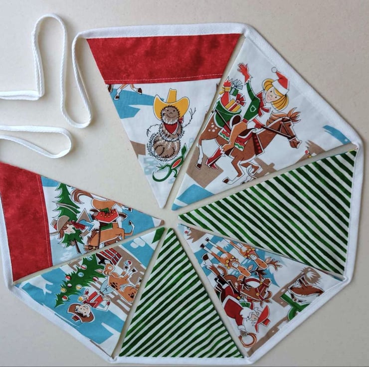 Who says bunting should just be for certain times of the year. My range of reversible bunting can be enjoyed all year round - this one combines a two fun retro prints for Christmas and all year round.