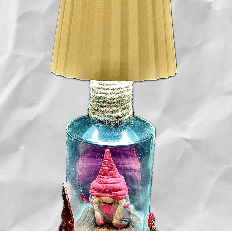 Truly stunning one of a kind up cycled bottle with USB rechargeable lampshade.