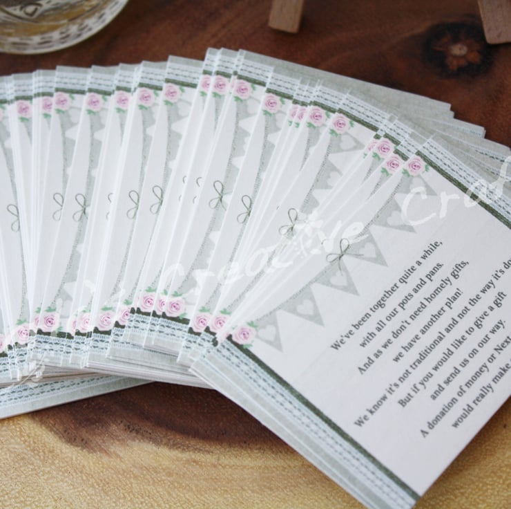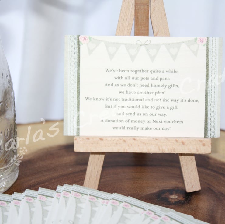 Beautiful hand crafted Shabby Chic Wedding Money Poems, made just for you.