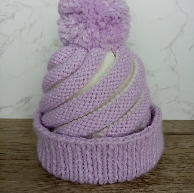 Cupcake swirl hat in orchid with a sumptuously soft cream inner swirl topped off with a cute bobble.