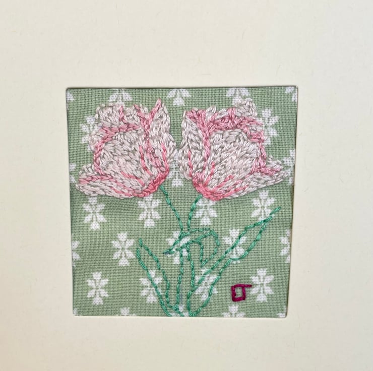 This is one of a series of flower cards hand stitched by me on a vintage cotton fabric.