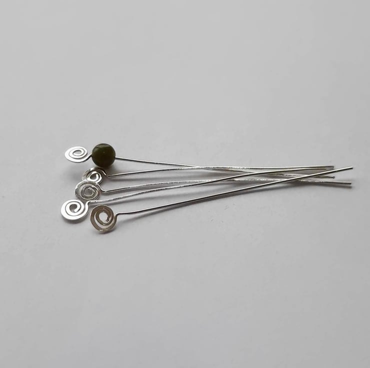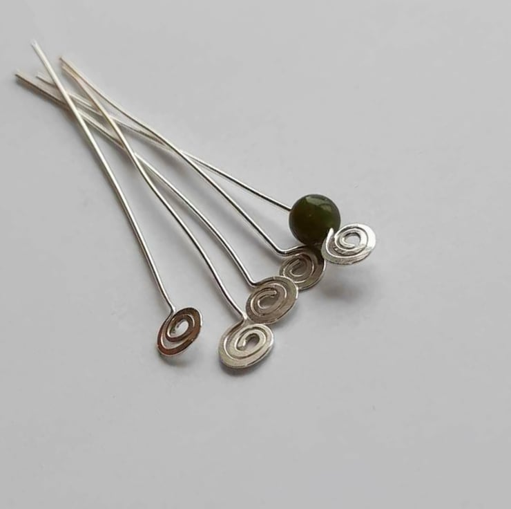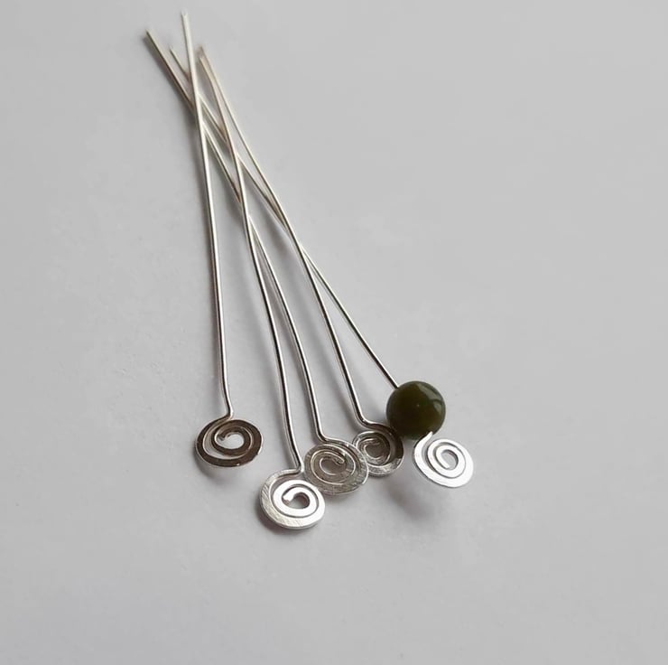 Make your handmade jewellery stand out from the crowd with these pretty hand forged spiral end sterling silver head pins! The price is for a set of 2 (one pair) head pins.