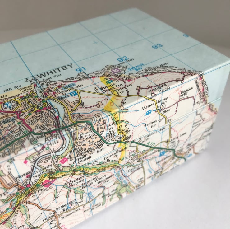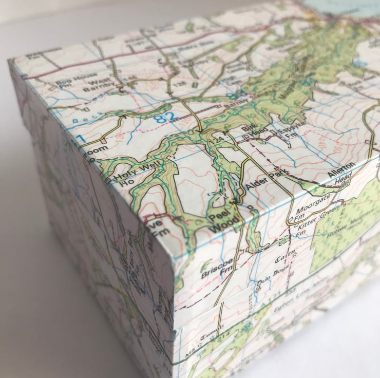 Bookbinding and box making have been a lifelong passion and I love making one-off variations of this design to store small precious items and to utilise my vast collection of Ordnance Survey maps!