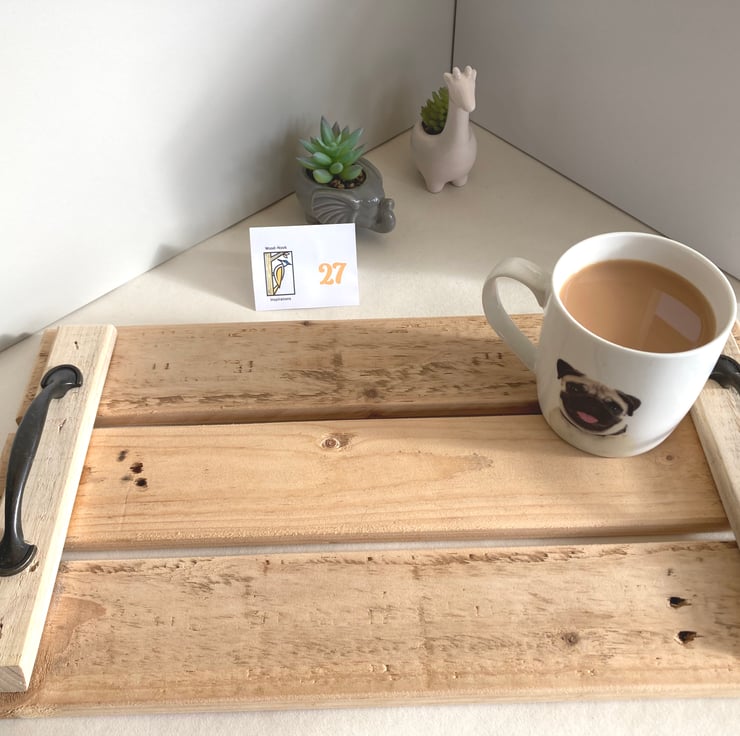 This beautifully handcrafted rustic tray is great for serving breakfast in bed, used for picnics or as a decorative piece in your kitchen or home.
