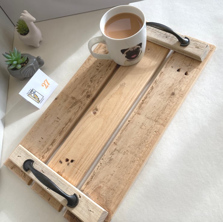 Made from environmentally friendly unfinished recycled wood, each one has its own character and charm and the up-cycled handles have been carefully selected to compliment the natural rustic beauty of the tray.