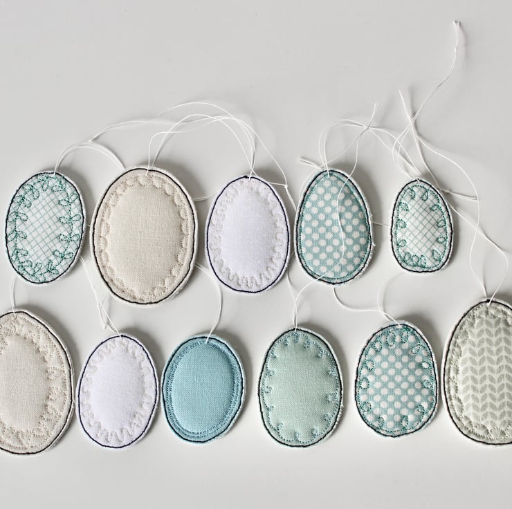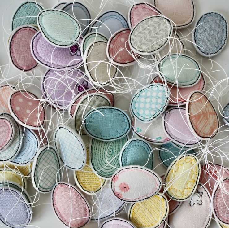 Pretty fabrics sewn into egg shapes.