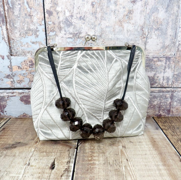Give your evening bag a new lease of life with this black acrylic beaded handle.