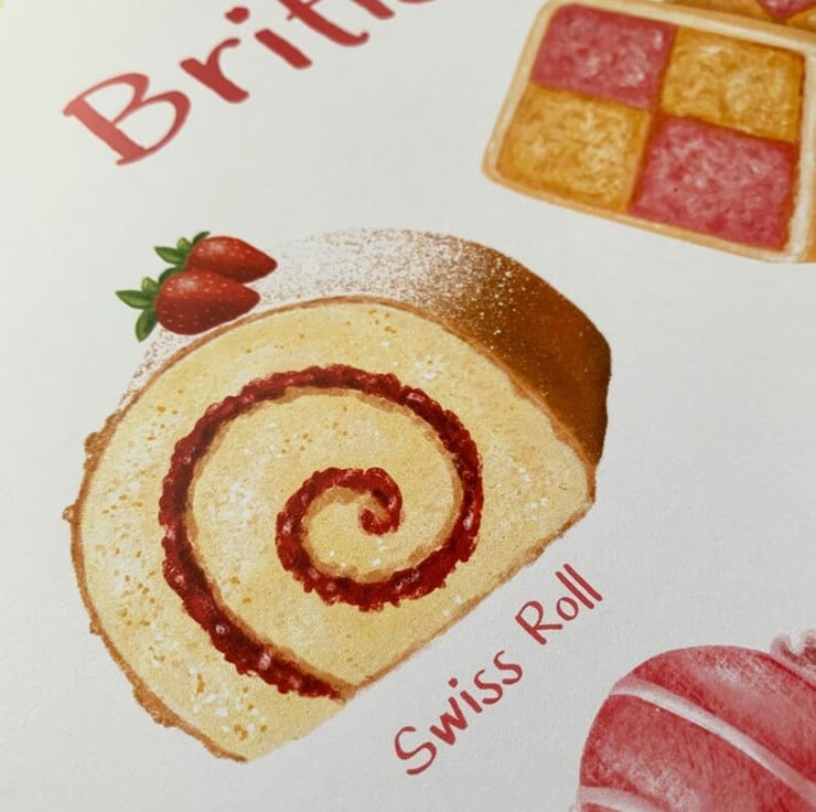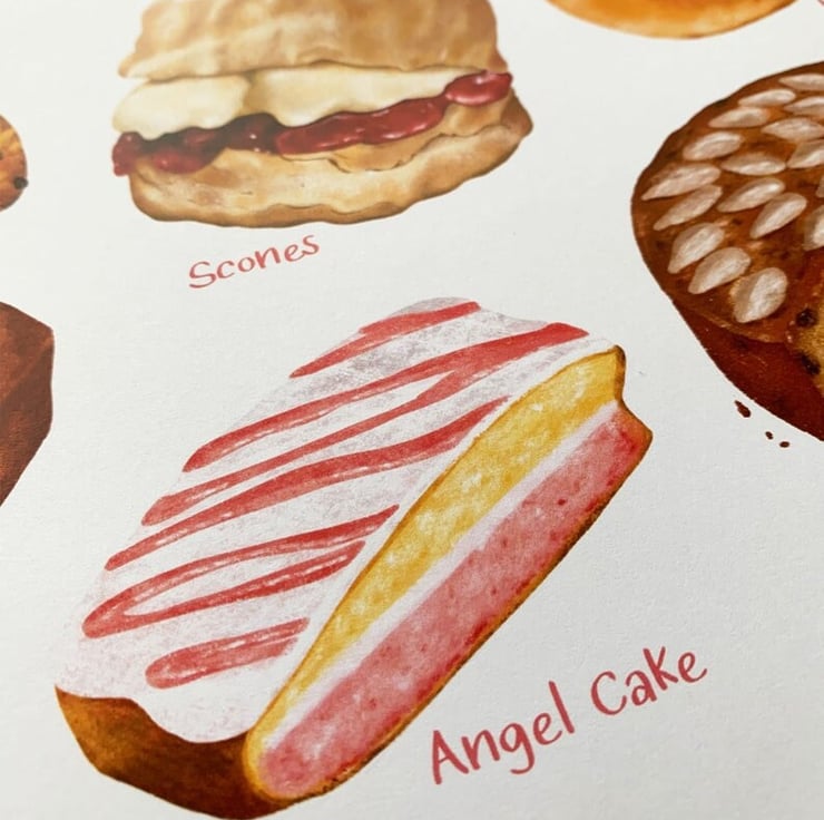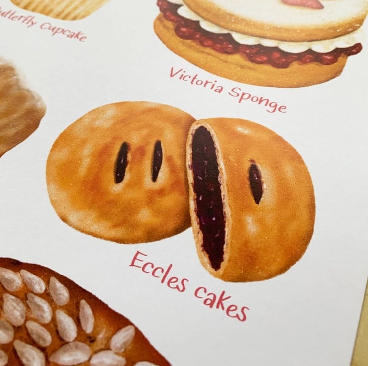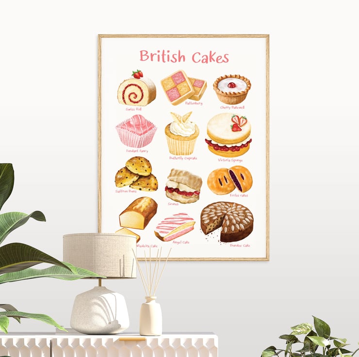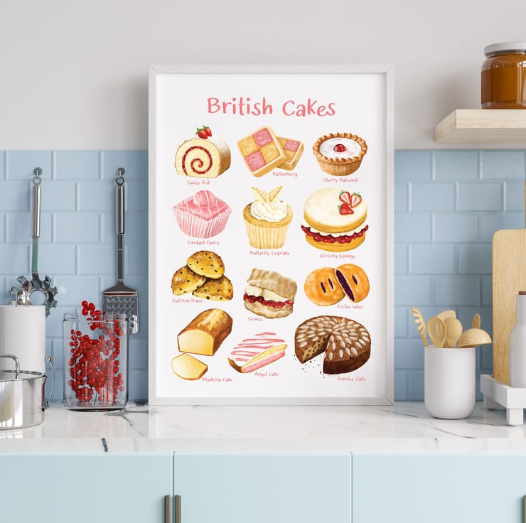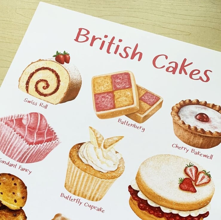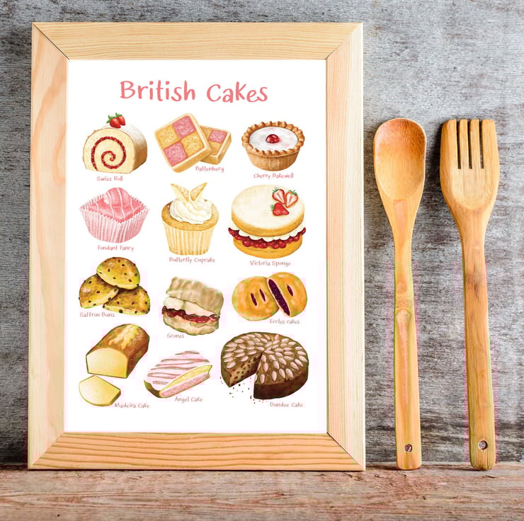 British Cakes Art Print - a series of illustrated cakes good enough to eat. Great print for your kitchen or dining room. Lovely gift for a baker.