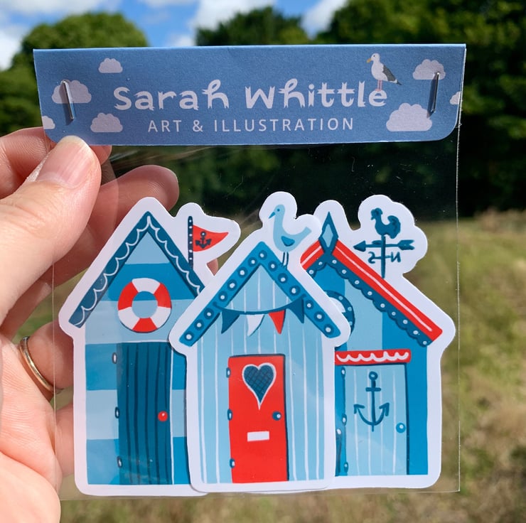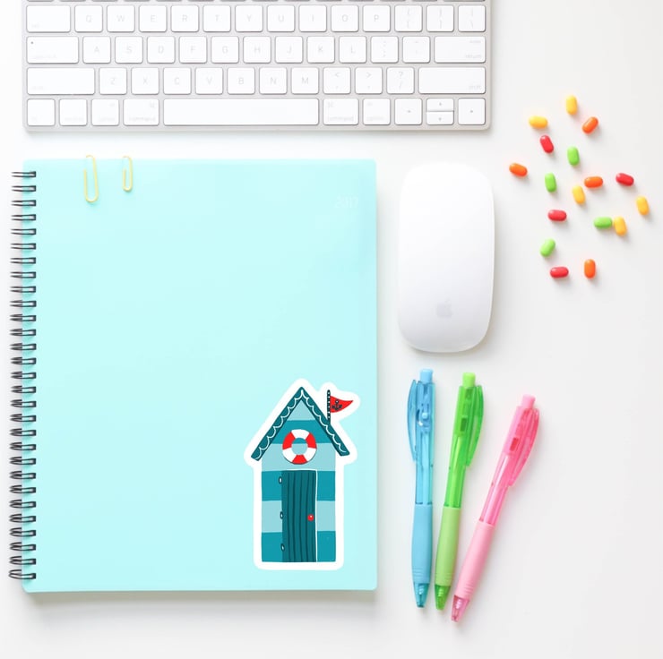 These hand drawn and handmade beach hut stickers are great fun to decorate your journals, scrapbooks, notebooks, laptops or whatever you like.
