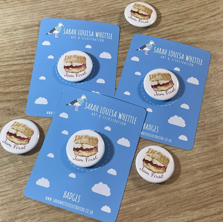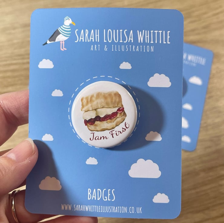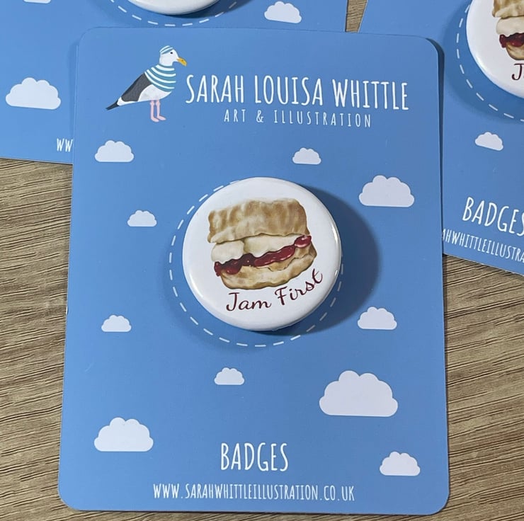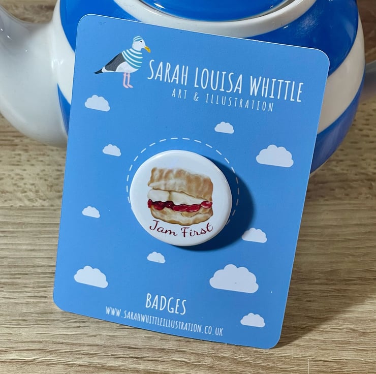Jam First Pin Badge - Because it's the proper way! This cute pin badge would make a great gift.