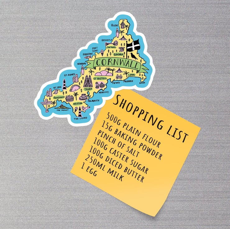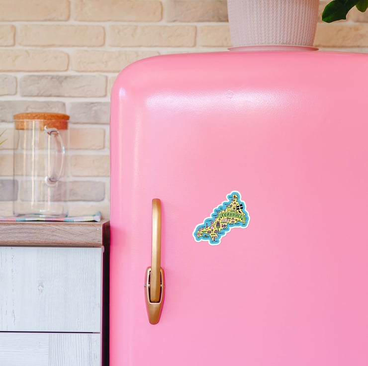 Cornwall map fridge magnet from my original illustration. A great gift for a loved one or friend or to remember your holiday in Cornwall.
