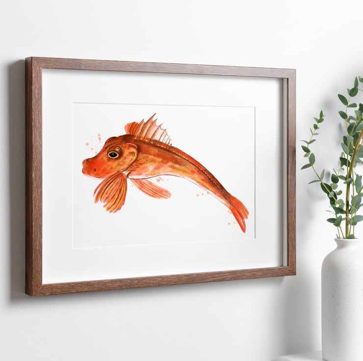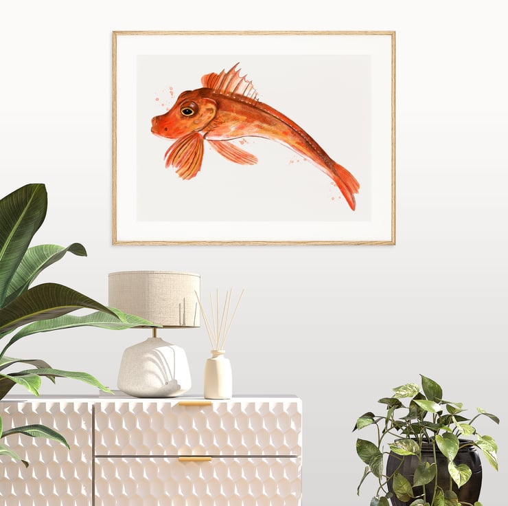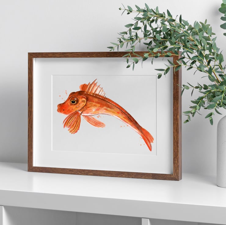 A lovely coastal wall art print of my original illustration of a Cornish Gurnard Fish in a watercolour style.