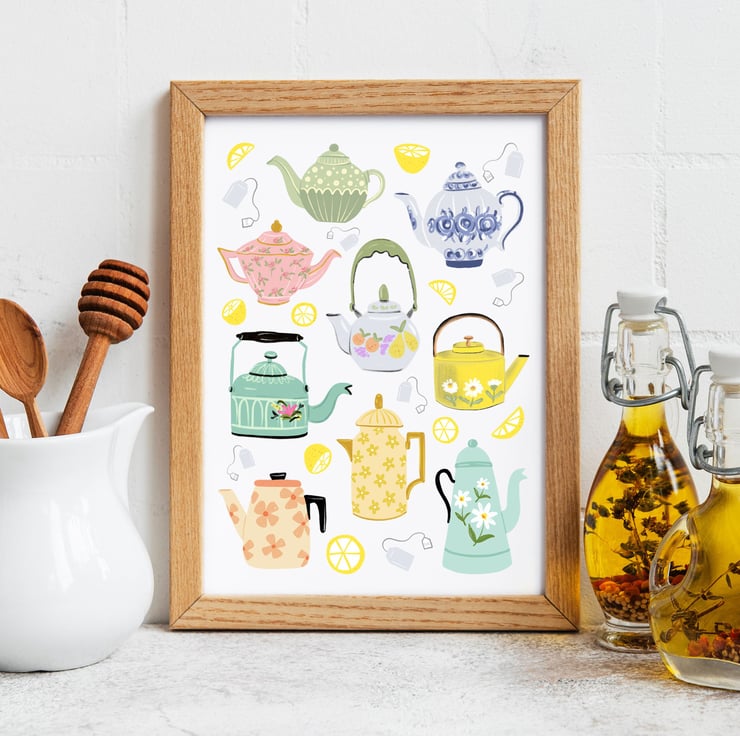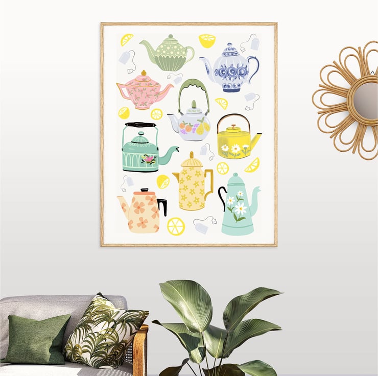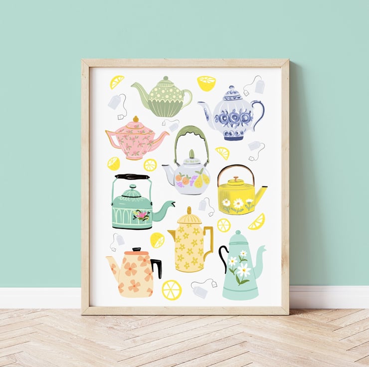 Vintage Teapots Art Print. Step into a world of timeless elegance with my Vintage Teapots Art Print, a stunning piece that captures the essence of vintage charm. This print is the perfect addition to your home decor, evoking a sense of nostalgia with a pretty pastel colour palette.