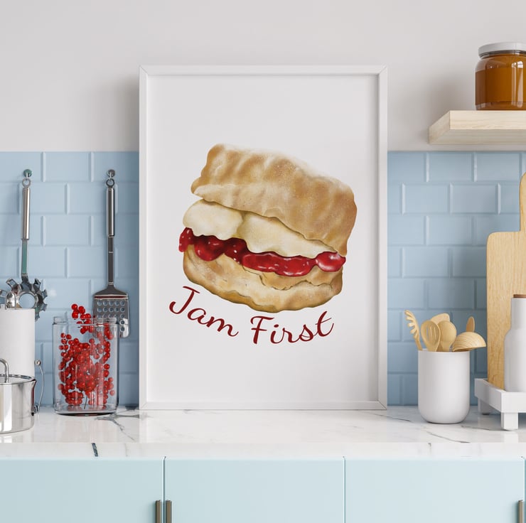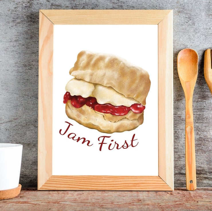 In Cornwall we like our scones with the jam first then the cream! If this is the way you like it, this print would be great for decorating your kitchen or dining room.