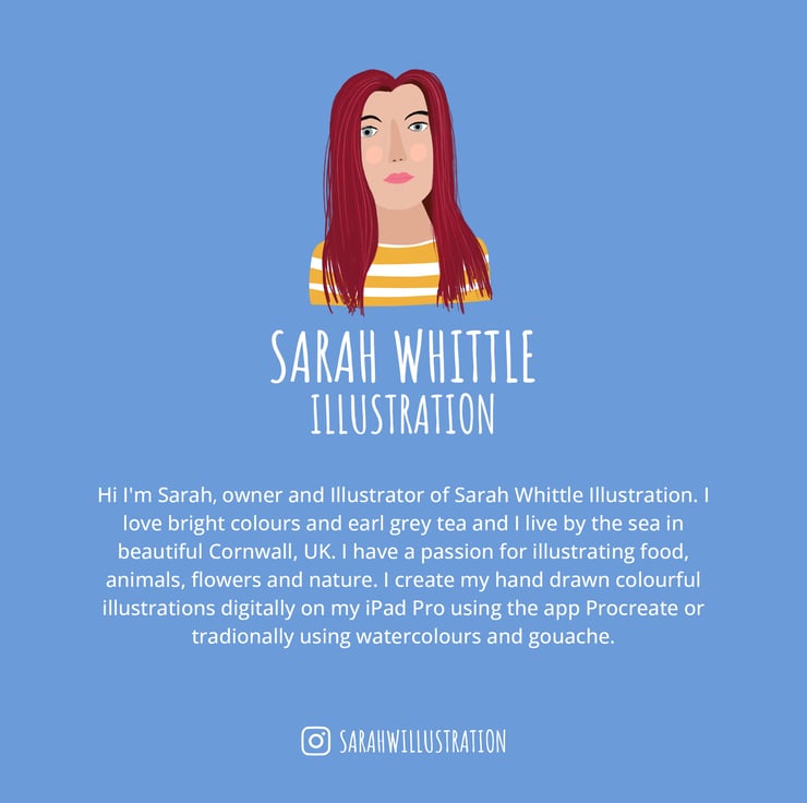 Hello, my name is Sarah and I'm and illustrator based in Penzance, Cornwall. All my illustrations are hand drawn and produced by me in my little studio by the sea. Your order will be posted Royal Mail 2nd Class postage and I include a free sticker and hand written card with every order.