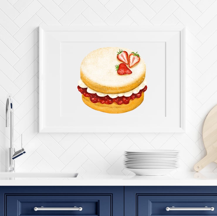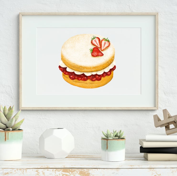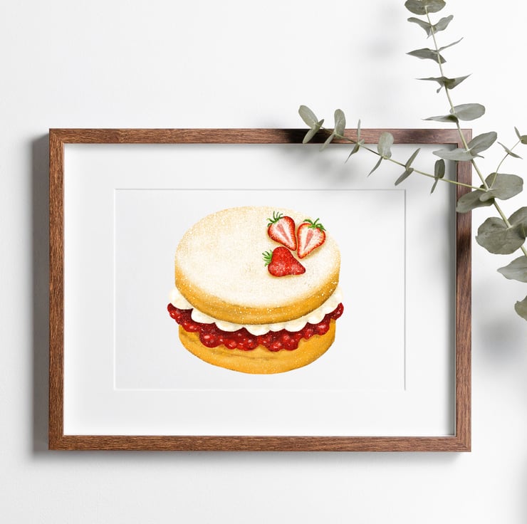 A beautiful high quality illustrated art print of my mini Victoria Sponge Cake from my British Cakes series. Definitely just a one person portion.