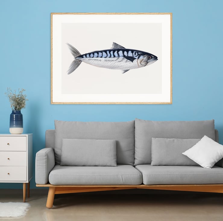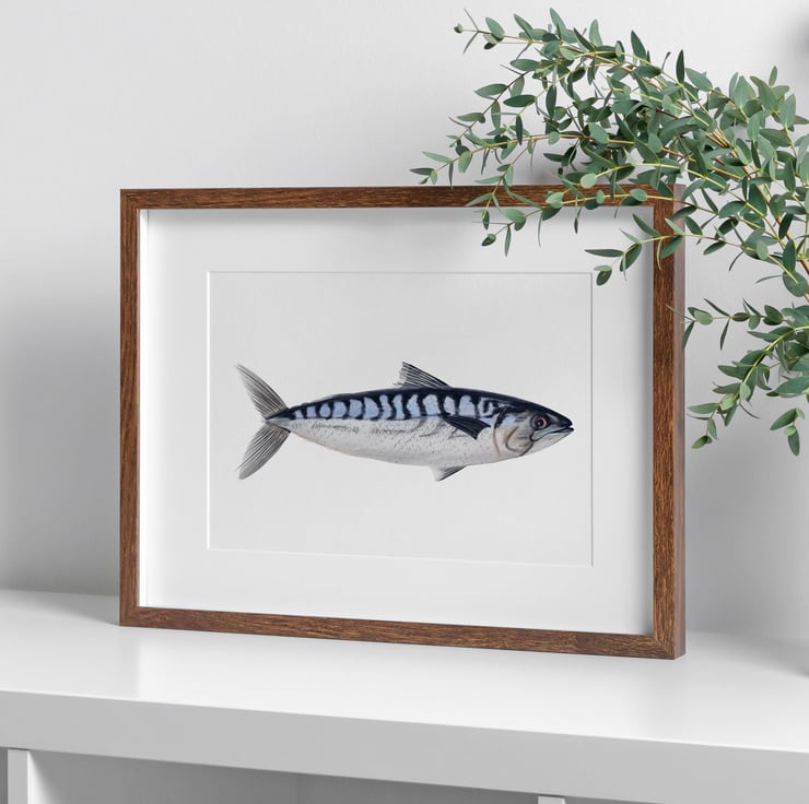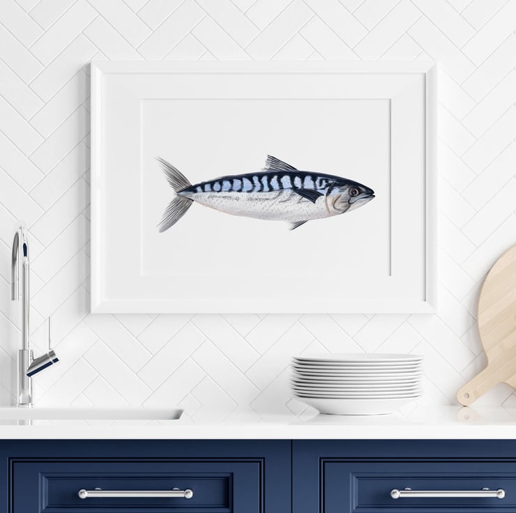 A lovely coastal wall art print of my original illustration of a Cornish Mackerel.