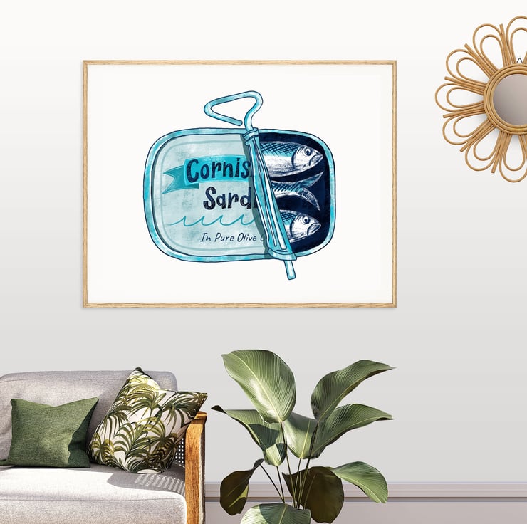 Cornish Sardines in a Tin A4 Art Print, Cornwall Art Print