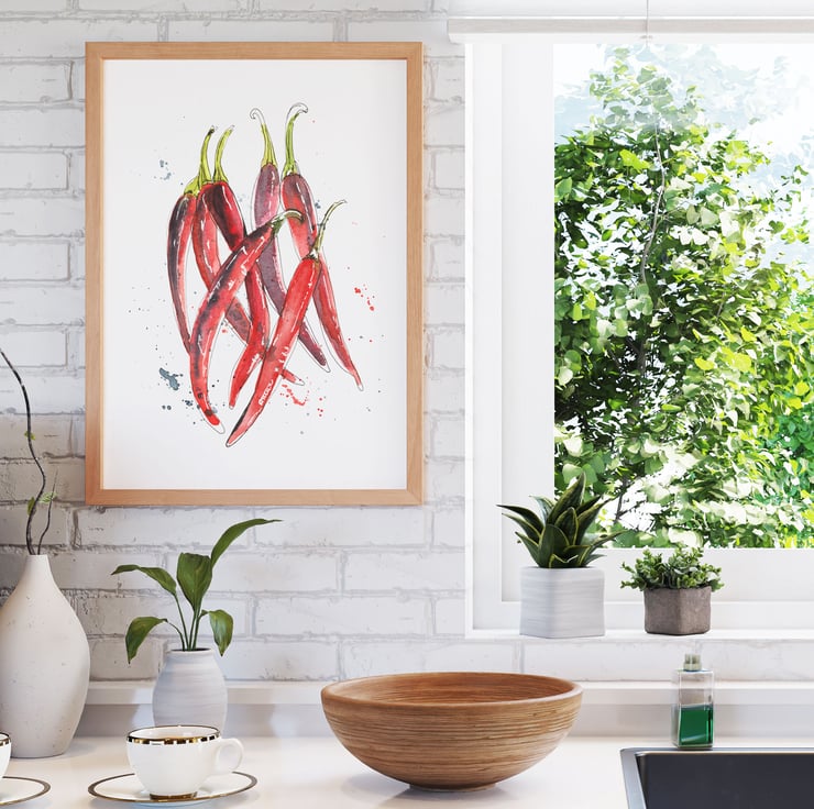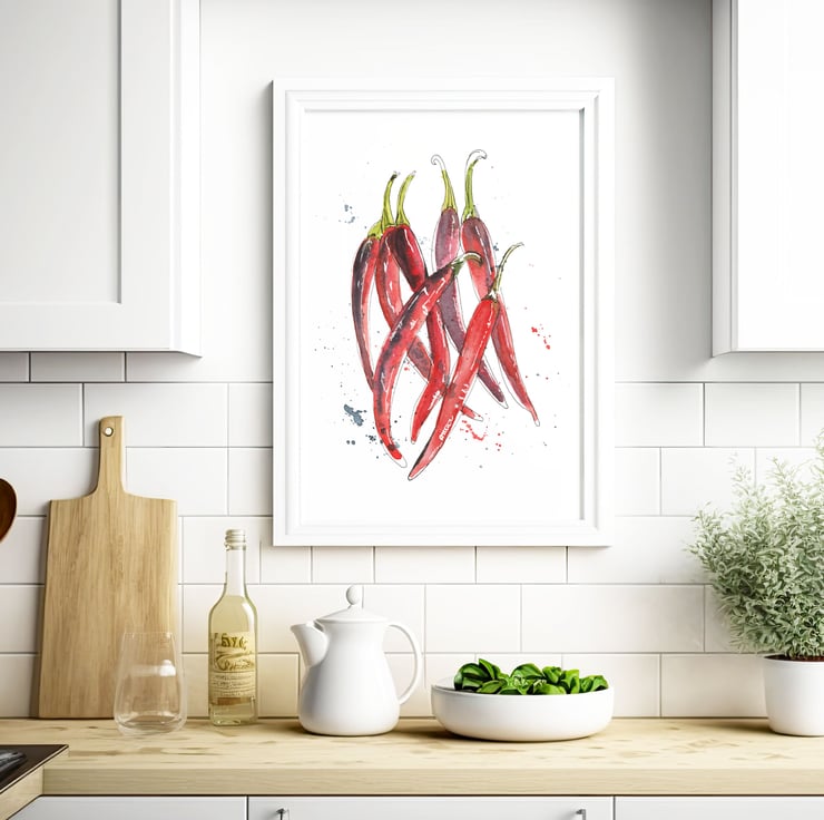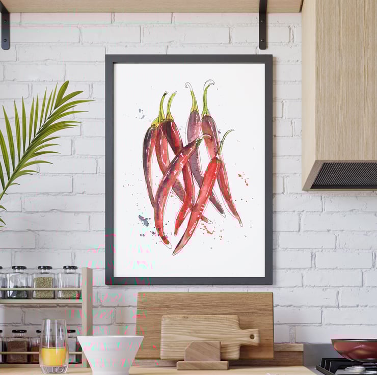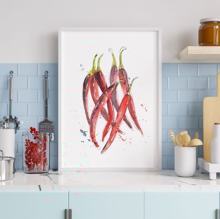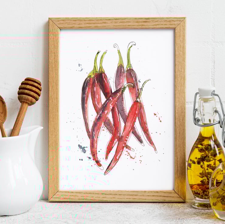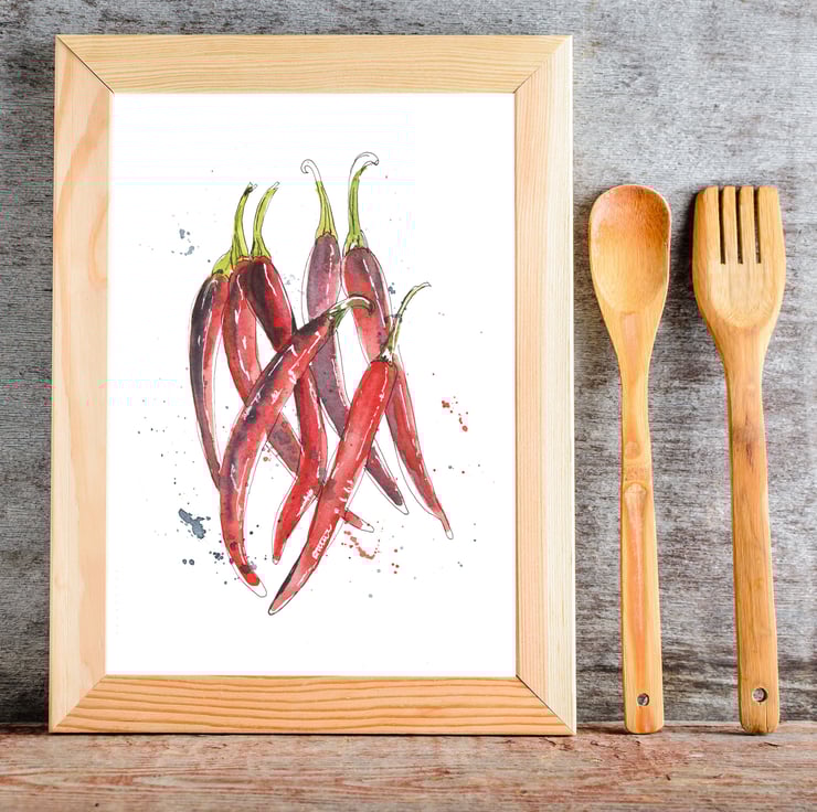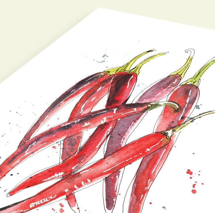 Chillies in watercolour and ink, a lovely art print from my original hand painted illustration.