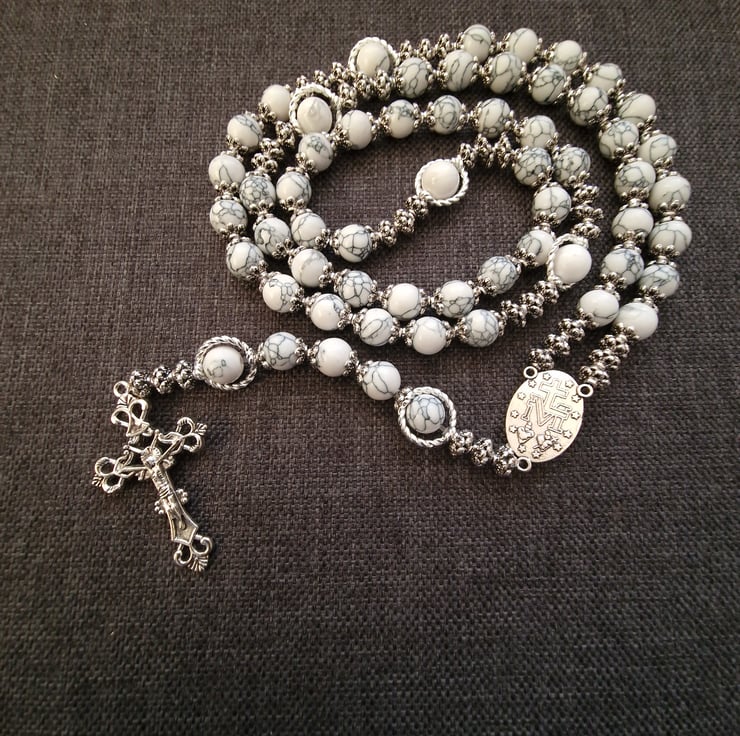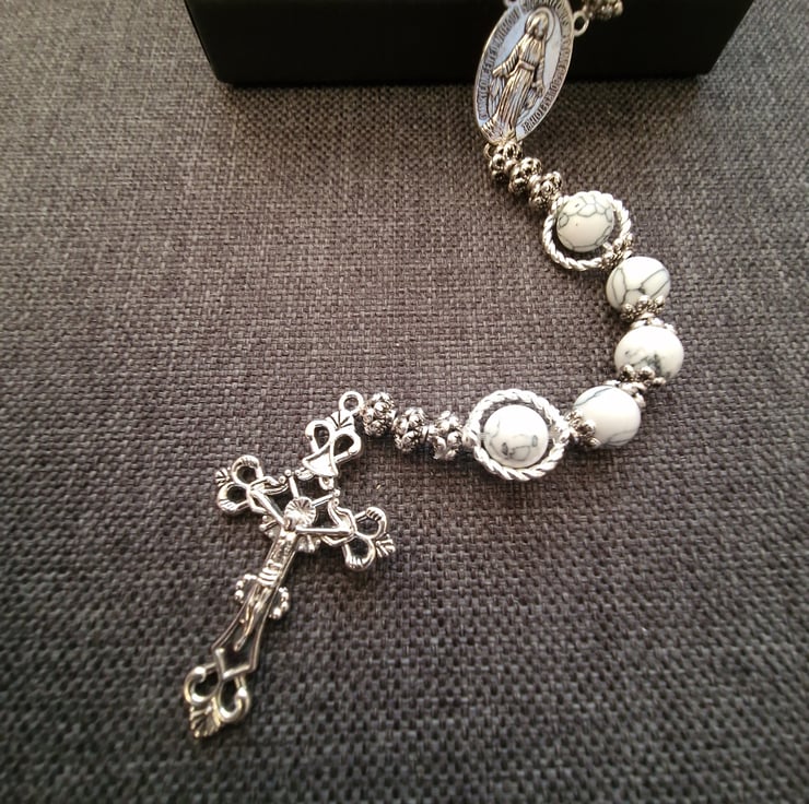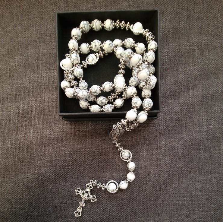 Handcrafted natural stone rosary. perfect christening or holy communion gift. Available as ready packed for you in a gift box