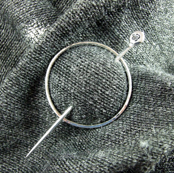 Shawl ring Measures approx 2 inches across and the pin is 3.25 inches.