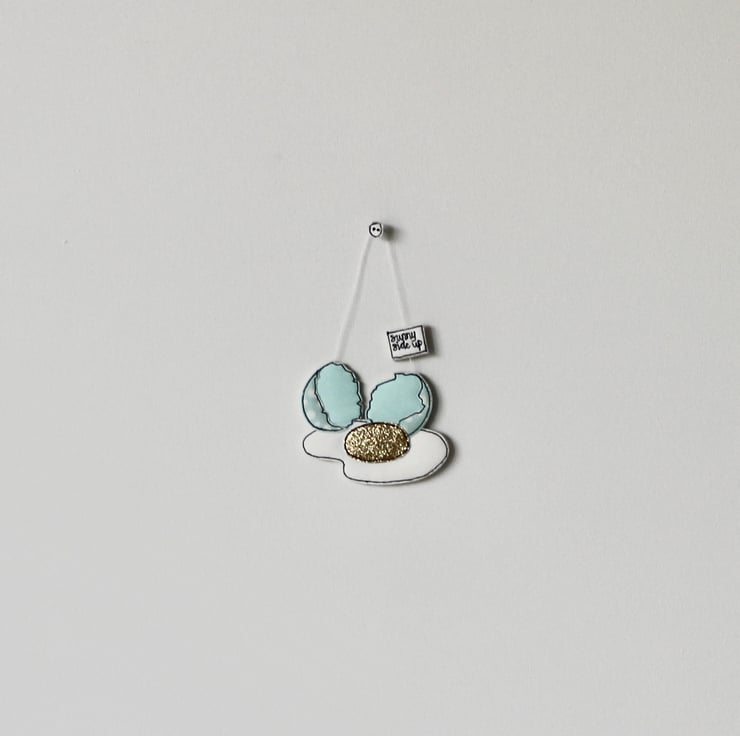 Suspend 'Sunny Side Up' using the linen thread loop and it will definitely bring a smile to your face.
