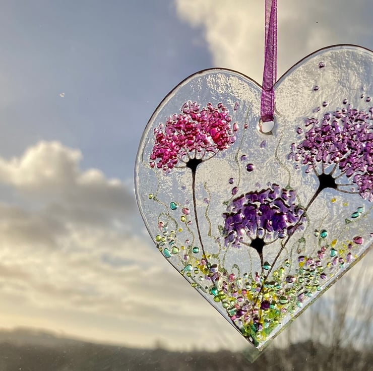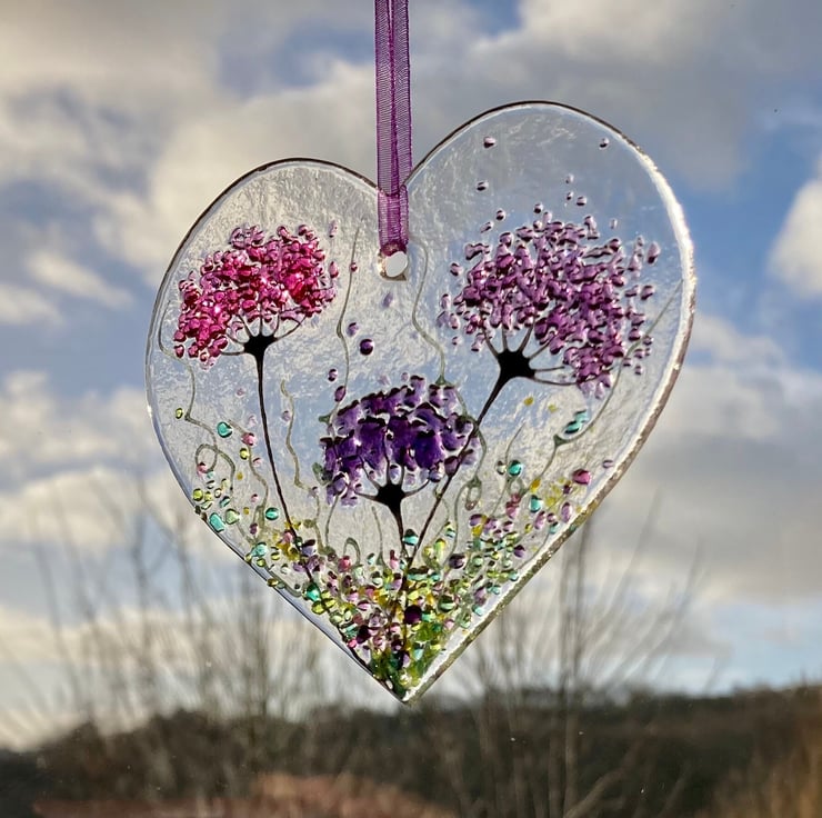 The glass heart size is approximately 9 to 9.5 cm.