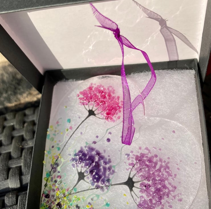 Every picture is individually made so no two are ever exactly the same, and each ones comes complete with a hanging ribbon.