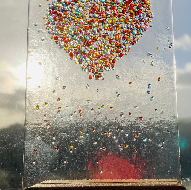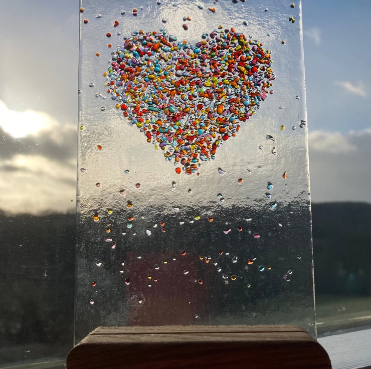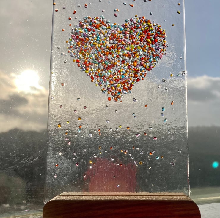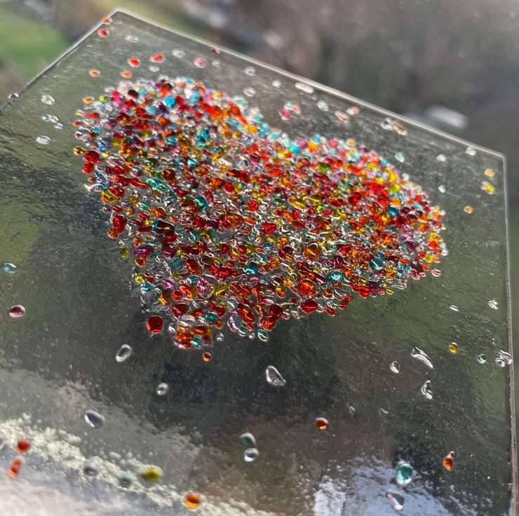 As they are handmade very occasionally some elements may be slightly asymmetrical due to the unpredictable nature of glass when it is heated to kiln temperatures.