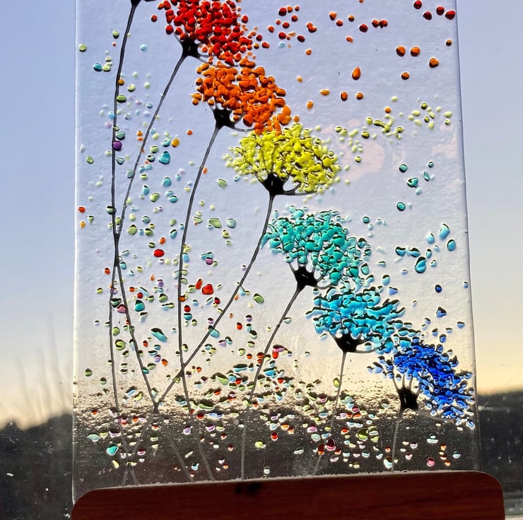 The item received will be the same size, style & design with minor variations as each one has been individually hand made. Every glass picture comes complete with a wooden display stand. The brightly coloured glass will never dull or fade.