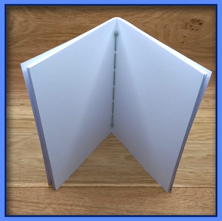 A lovely handmade A6 Notebook, jotter or Sketchbook, the cover is a design of mine printed on card, there are 10 Pages (20 sides) 250gsm paper, hand stitched with green coloured thread using a chain stitch.