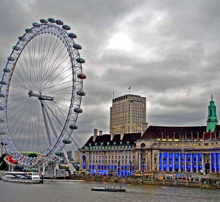 London Eye on the South Bank of the river Thames in London England United Kingdom