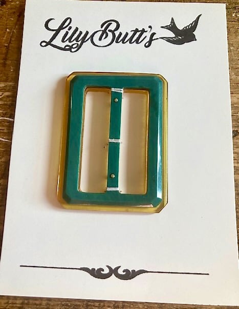 Vintage Yellow Perspex & Green Plastic Buckle, in good vintage condition.