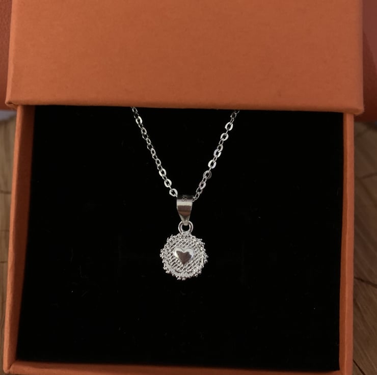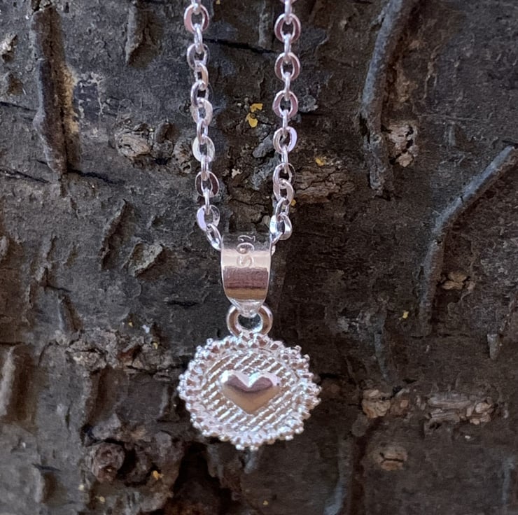 Perfectly pretty knitted love heart, made from silver precious metal clay, which when baked has the same properties as sterling silver. Carefully printed, cut and fired to give you a beautiful, delicate necklace to cherish. Hung on delicate 18" sterling silver chain.
