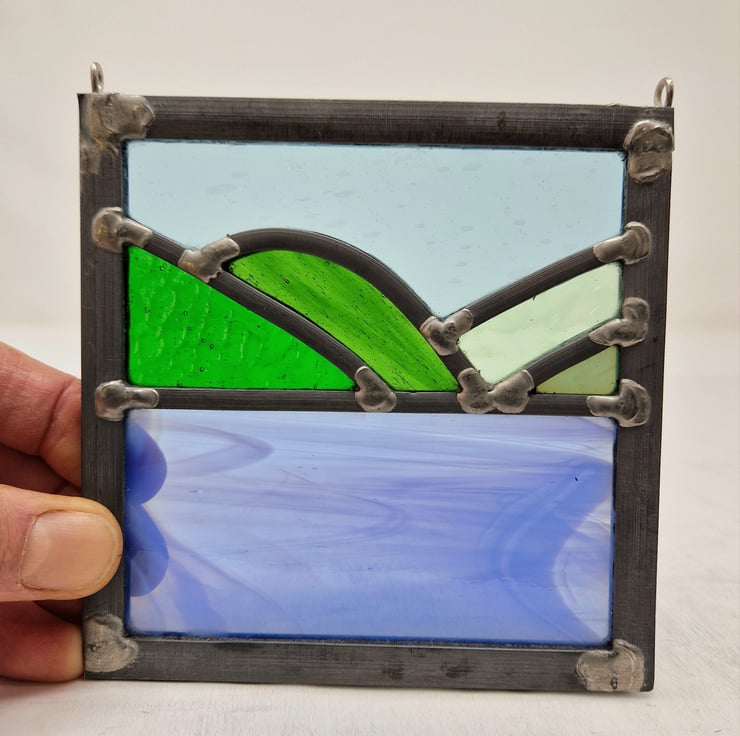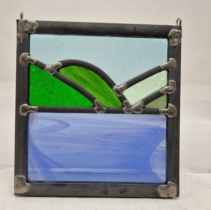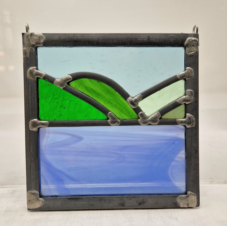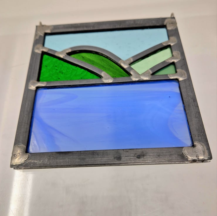 A small leaded panel based on a view from the Raasay to Skye ferry.