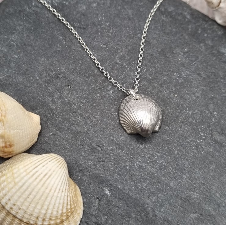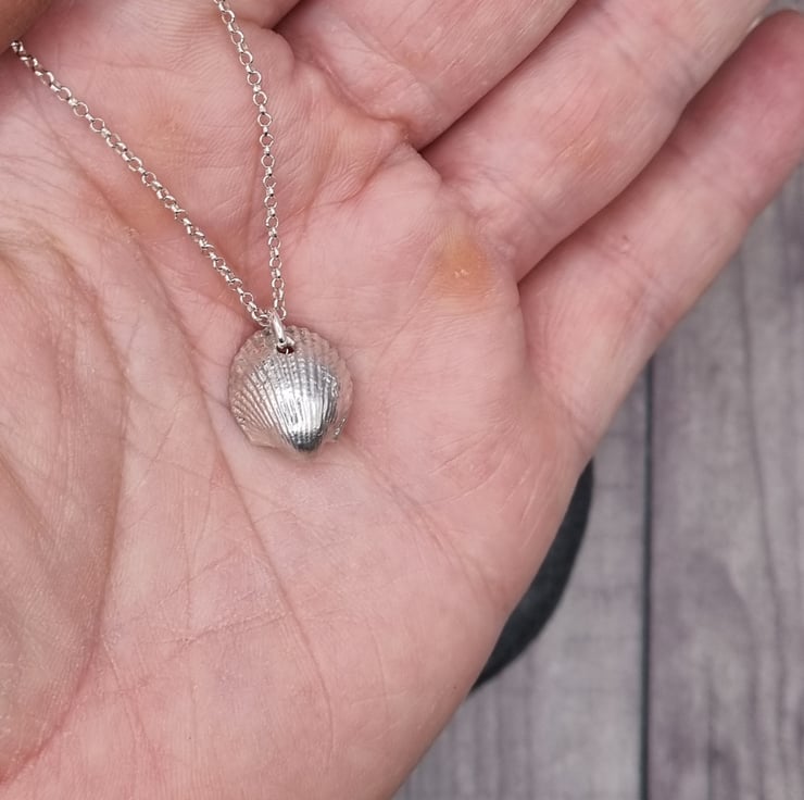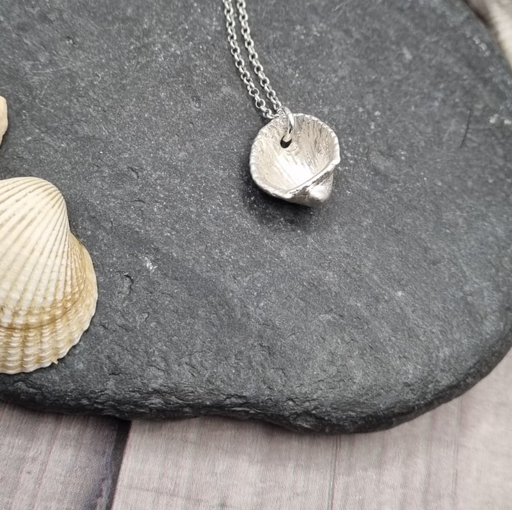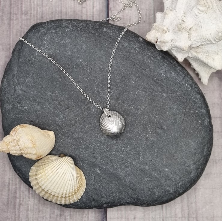 This sweet little Cornish Cockle shell measure approximately 1.4cm across and is supplied on an 18 inch sterling silver necklace chain, different styles and length of chain can be supplied on request, please message me for a quote.
