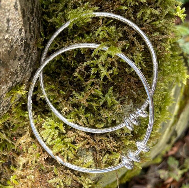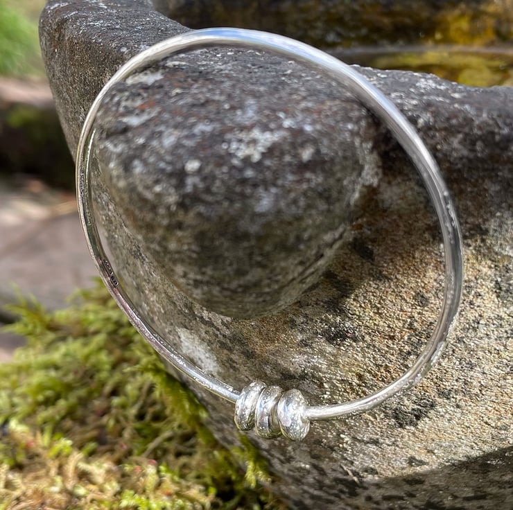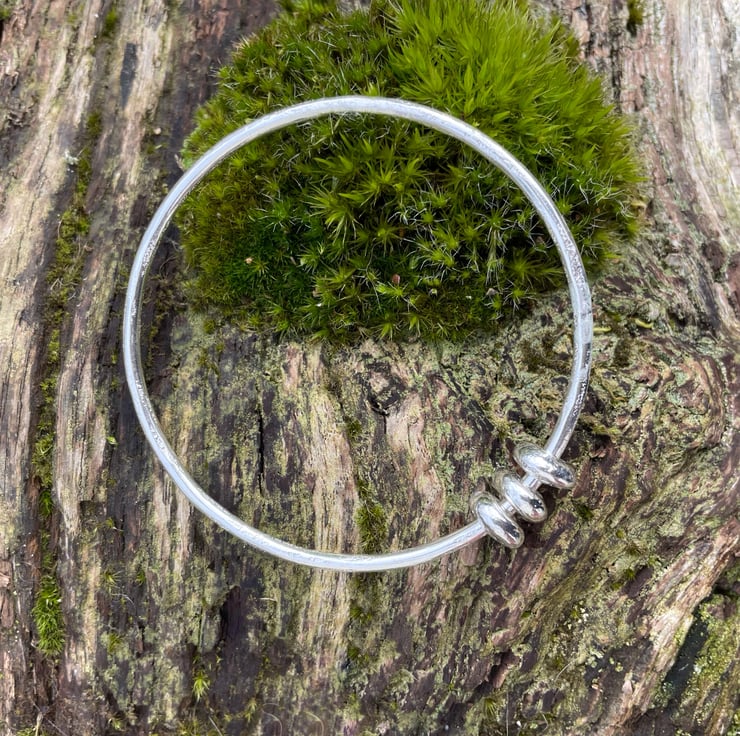 Sterling silver round bangle with 3 handmade silver freeform nugget beads.